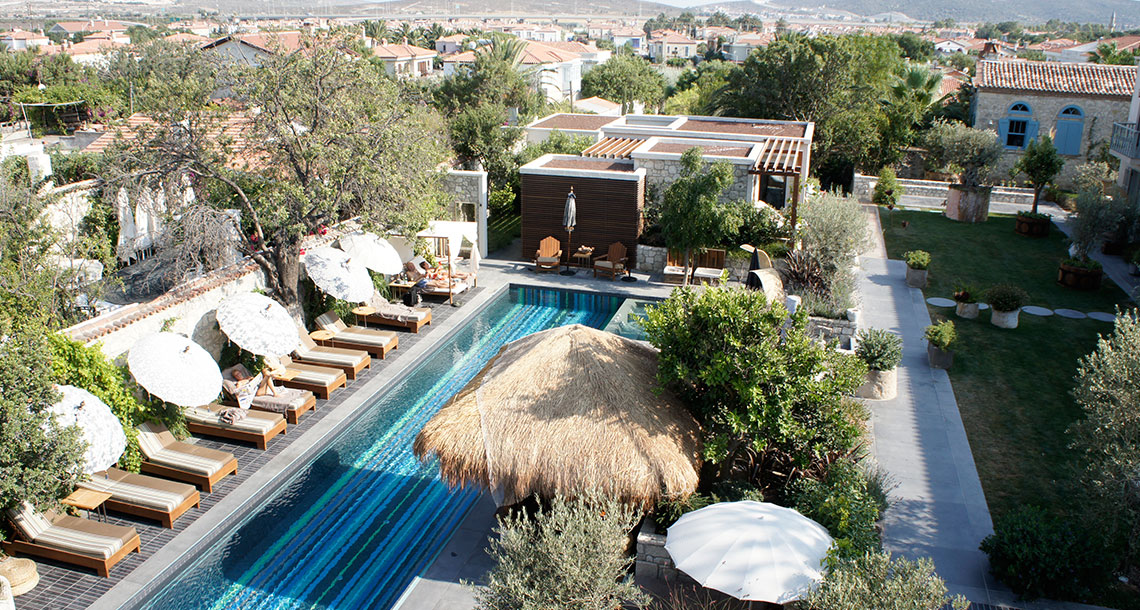 Stone-built Alavya features traditional Alacati architecture with elegantly-decorated rooms with high ceilings and hardwood floors. Relax in the sauna, or enjoy an expert massage or skin treatment in Mibosa Spa. You’ll delight in Alavya’s famous breakfast of regional specialties including organic eggs, freshly-baked bread, and local farm honey. Try a yoga or Pilates class before enjoying an afternoon by the pool, all before heading to MITU Café and Bar to sample fresh seasonal gourmet dishes.