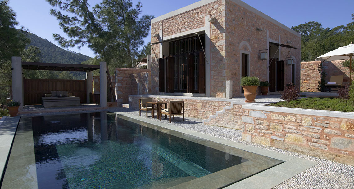 Graceful and tranquil Amanruya combines Mediterranean and Ottoman architectural design and contemporary suites. After a day of touring classical sites, enjoy your private swimming pool and garden in your Pool Terrace Cottage. Savor fresh local seafood, seasonal mezes or one of the region’s quality wines in one of their dining pavillions, or opt for jewelery or carpet shopping. Or, taste one of their delicious signature cocktails in the lounge or go for a cup of warming tea in the library.